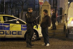 A bomb exploded close to a busy restaurant in Belfast on Friday night as police were clearing people from the area, leaving no one hurt,