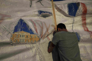 By Vassilis Triandafyllou and Karolina Tagaris Greek anti-establishment protesters threw dozens of petrol bombs at police in front of parliament on Wednesday ahead of a